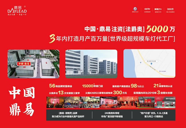 在采访过程中,小编也了解到鼎易新企业园区正在密锣紧鼓地动工中,预计两年内完工进驻;同时注资【法爵奥】五千万,计划未来三年内打造月产百万量的“世界级超规模车灯代工厂”,为完成2021年至2023年第二阶段“行稳·致远”品牌宏观战略积极布局,也为2024年至2027年第三阶段品牌发展构筑坚固的基础。