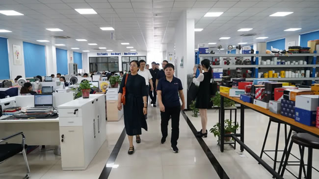 7月22日,玉环市副市长李丹佳,商务局局长龚时波,招商局局长黄徳波,玉环市汽摩配行业协会会长郭健辉、副会长周建国、秘书长胡士亮一行来瑞立参观考察。