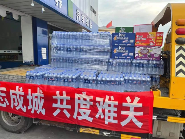 7月22号,在看到河南市民在洪水中积极求生的场面后,业主朱玉宝坐不住了。看到灾情严重,想到自己有拖车可以去帮忙,当下就和门店员工一拍即合,一行4人自驾近1000公里去河南支援。