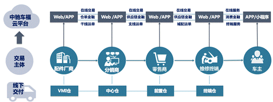 中驰车福秉承“开放•连接•赋能”的核心理念:“开放”是我们退出配件自营交易,平台面向全行业开放合作,不与行业主体抢食;“连接”是我们将产业链上的交易主体,包括配件厂商、配件经销商、维修终端、仓储企业、物流企业、整车商、保险企业、金融企业、以及运营车平台、租赁公司、私家车等主体,连接到一个互联网云平台上,开展配件分销服务、配件零售服务和车主服务;“赋能”即时将产业链上各交易主体上、下游之间产生交易的信息流、资金流和物流实现在线化、数字化和智能化,这是对今天基于电信网络通过语音、文本和图片传输的交易方式,向未来基于“在线化、数字化和智能化”交易的一场巨大变革,也是人类历史上商品交易的第三次革命。中驰车福专注打造产业互联网平台,逐步构建新型的汽车产业链生态圈,以建立面向未来的行业数字化公共交易平台。目标连接上千家知名品牌配件厂商,上万家优质配件经销商,共同赋能20万家优选的维修终端,服务好中国上亿车主用户,最终构建完善的汽车产业链协同新生态。