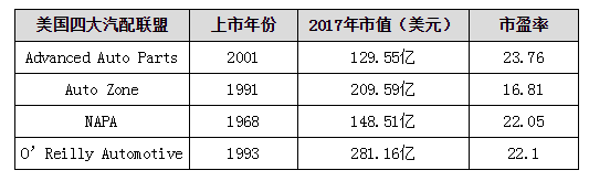 从欧美汽车后市场的发展历程来看,行业整合过程中资本的力量不可或缺,资本的助力已经成为行业整合最重要的推手。以美国四大配件连锁平台为例(以信息系统支撑的B2B平台,见下表),得益于当年华尔街的私募基金支持,在资本市场上不断并购才得以实现上百亿美元的收入规模和200亿美元左右的市值,上市20年市值上涨50倍以上。目前美国汽车后市场基本上整合形成了4大保养件连锁平台,100多个事故件仓储销售商(WD),3个轮胎供应服务平台,还有4大配件商联盟。这些平台性组织占有美国市场80%以上的销售份额,从而保证了美国汽车后市场的良性竞争与健康发展。