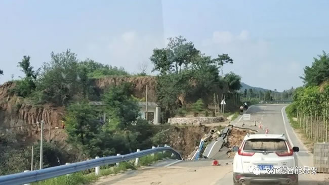 被冲断的柏油路