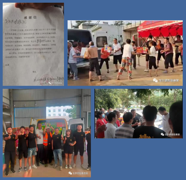 河南人,我们的同胞!面对灾情,浙江戈尔德智能悬架股份有限公司当然不会置身事外,毅然而然的选择挺身而出!7月27日早上十点,我们收到一线情报:河南还有几个村庄受损严重,村内物资只能支撑2天。半小时后,戈尔德公司内部召开紧急会议,迅速通过了“戈尔德有爱,豫你同在”河南支援活动。