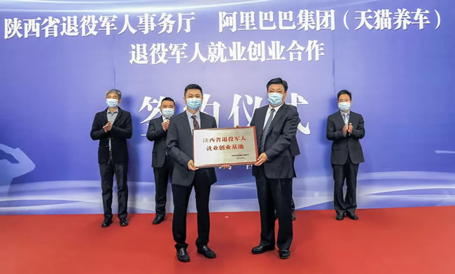 2020年4月,陕西省退役军人事务厅更与天猫养车签署“退役军人就业创业合作协议”,与天猫养车联合挂牌成立了“陕西省退役军人就业创业基地”,帮助退役军人实现高质量就业。天猫养车积极响应党和国家的号召,有效助力退役军人就业创业,推进弘扬军队优秀文化,并立志打造出汽车后市场中的退役军人红星服务品牌。