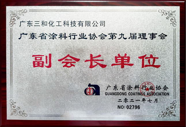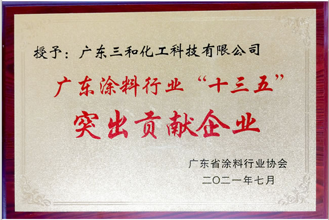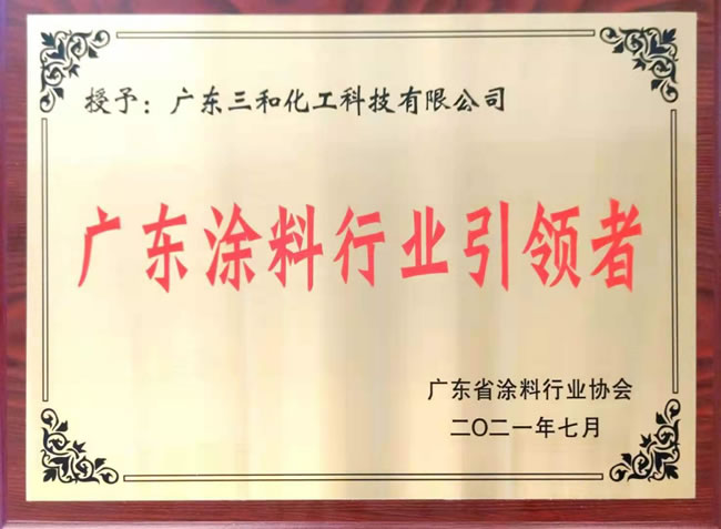 三和精化凭借过硬的综合实力,获得广东省涂料行业协会第九届理事会副会长单位,并被授予"十三五"突出贡献企业和"广东涂料行业引领者企业"的荣誉。