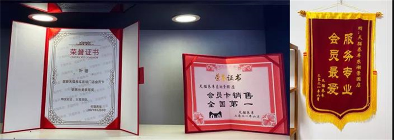 东湖景园店荣获总部颁发荣誉锦旗、全国会员卡销售第一等荣誉奖项