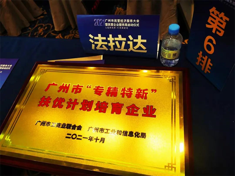 11月1日,广州市民营经济服务大会暨“民营企业服务周”启动仪式在东方宾馆举行!法拉达集团经过自主申报、形式审查、专家评审和公示等程序,正式入选首批广州市“专精特新”扶优计划培育企业。法拉达集团董事长张建发先生受邀参加此次会议,并出席广州市“专精特新”民营企业扶优计划培育企业授牌仪式。