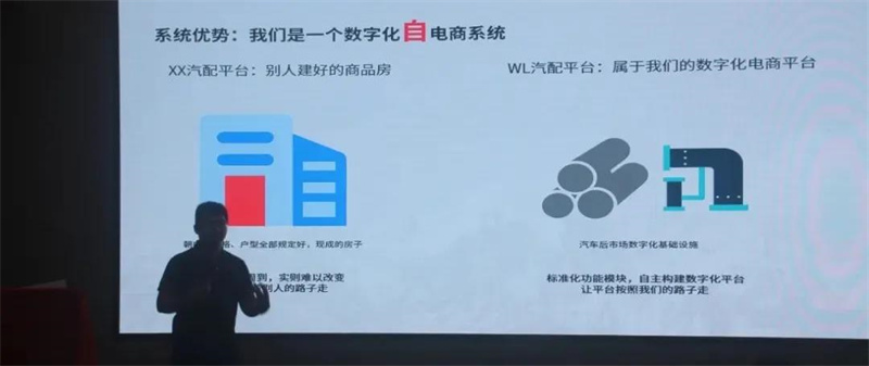 除麻总详细介绍WL平台商业模式外,也邀请了车同轨CEO汪步东先生和WL经销商代表,分别就“汽配行业如何结合数字化找到自己的出路”以及“WL的维修厂运营技巧”做了主题分享。
