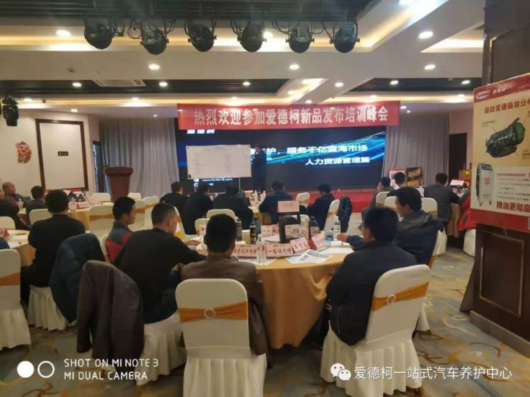 会议现场推出的爱德柯全新产品——全合成DE SN 5W40机油受到修理厂老板的热烈欢迎,爱德柯推出的现场扶持优惠政策使得这款产品受到与会汽修厂的疯抢,现场订货十分火爆。