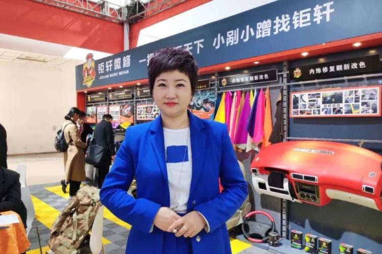王海霞:钜轩定位汽车微修,包括外观件和内饰件,外观件项目有快速补漆、车灯修复、轮毂修复和彩绘。此次参展的产品主要是围绕汽车内饰件整体解决方案,引进欧洲先进工艺,所有材料属于水性,环保,无味道。不拆卸仪表盘、门饰板、座椅、顶棚,在原位置直接喷涂改善,尽量保留原厂件。服务的消费群体是80后、90后,满足他们的个性化。我们相应推出私人定制的3D坐垫,不会破坏原厂件。此外,钜轩还提供配套的坐垫、脚垫、后备厢垫、腰靠,并根据客户选择的颜色对仪表盘、门饰板、座椅、顶棚进行修复改善,为客户提供一套整体的解决方案。