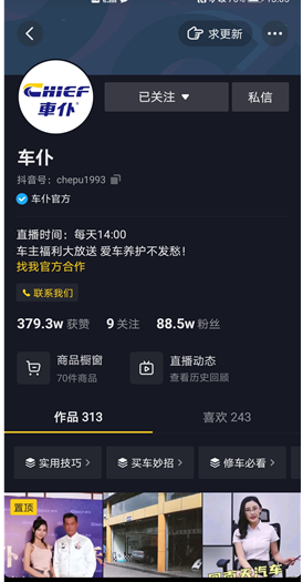 2017年12月,李佳琦入驻抖音,在没有任何推广的情况下,两个月的时间,涨粉1300w,(截止到2021年6月2日,他的抖音粉丝已经达到4502.3万。)除了粉丝量,李佳琦直播带货销售金额和货架清空速度都在不断刷新。显然像李佳琦这样出身平凡却缔造了一个王国的事迹,不光励志,也闪耀着黄金的光芒,诱惑着无数人前仆后继加入到直播带货的行列。汽车后市场领域的参与者车仆,当时也是坚定看好直播带货的美好未来,成为踊跃在平台上的掘金者,并在日后大放光彩。