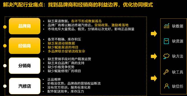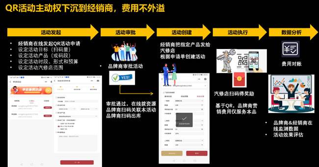 经销商没有人员没有能力没有时间配合执行,不愿把终端客户信息与品牌商分享,或者经销商有心无力是后市场常态。又或者经销商面对高度分散的分销商与修理厂,因为竞争激烈,因为人手不够,因为费用过高,没有能力与意愿去分销,提高分销商R密度,提高对修理厂b端的覆盖率,基于一物一码技术的数字化营销解决方案最大程度降低渠道内部各个渠道人员操作难度。