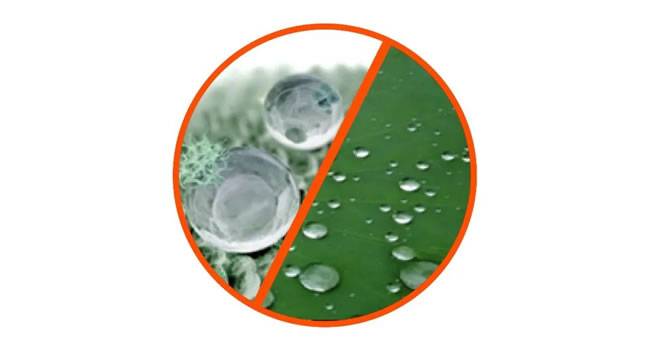 超疏水型涂层的表面带有非极性基团,能够产生“荷叶效应”。当雨水落在膜表面时,水流会因涂层表面张力的作用形成水珠,在自身重力作用下,水珠会轻易滚落,并且把膜面的油污和灰尘一并带走。因此,超疏水型涂层能够实现与荷叶相似的“出淤泥而不染”的自清洁效果。