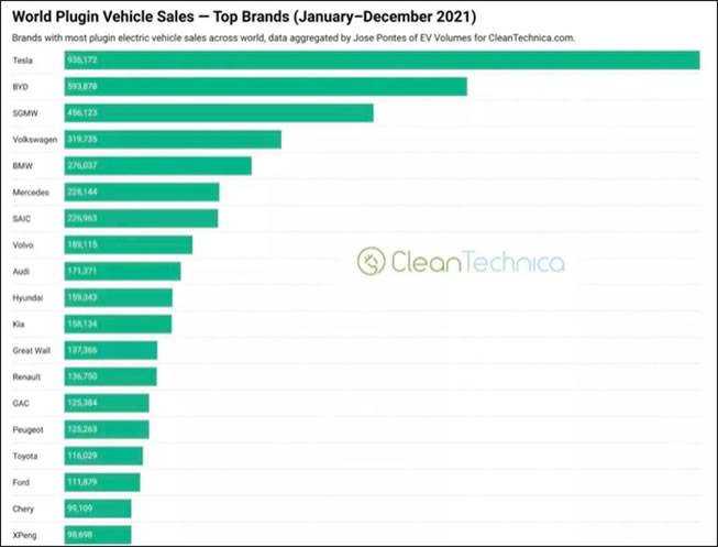对于大众汽车来说,缺芯并非其新能源车型表现一般的全部原因。因为中国市场的电动化赛道竞争更为激烈,产品选择更为琳琅,2021年全年销售量突破330万辆,在全球销量中占据半壁江山,而包括大众汽车在内的很多传统车企巨头都在中国面临本土品牌的强力阻击。