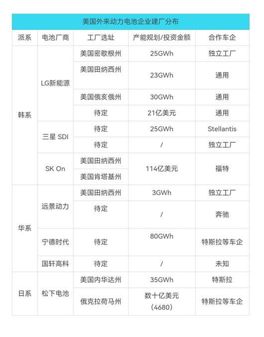 然而,作为三大车市之二的北美市场与欧洲市场,其蛋糕之大,显然不会由日韩两系电池厂商独吞。更何况,所谓一家独大的局面,也不是国际市场希望看到的局面。