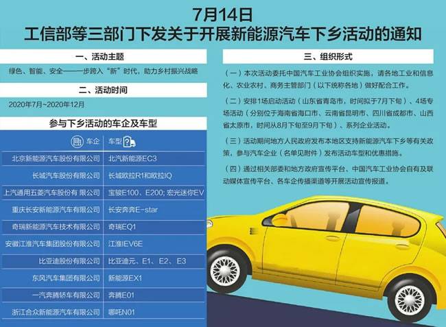 从国家发改委发布方案到2020年启动,再到持续2021年的“新能源汽车下乡”,也是战绩颇丰。据相关统计数据,从2020年7月开始,共有24家车企的61款车型参与了“新能源汽车下乡”活动,这些车型近4个月的销量超过18万辆。