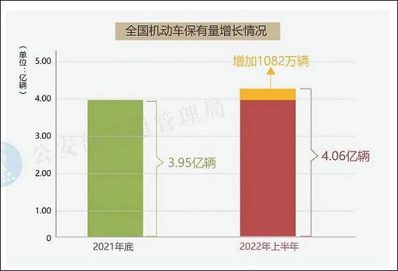 公安部7月6日发布的数据显示,截至2022年6月底,全国机动车保有量达4.06亿辆,其中新能源汽车保有量达1001万辆,占汽车总量的3.23%。