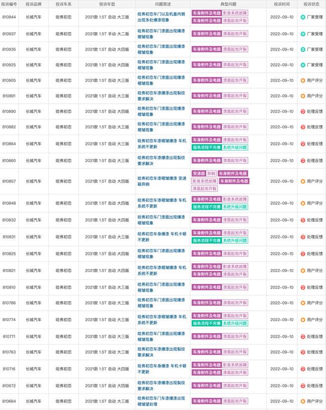 在经过了一段时间发酵之后,车质网平台、各大汽车轮胎、投诉类网站均出现了集中投诉,涉事车主都在质问长城的相关质检部门和生产部门是否在严格把控车辆的出厂质量。