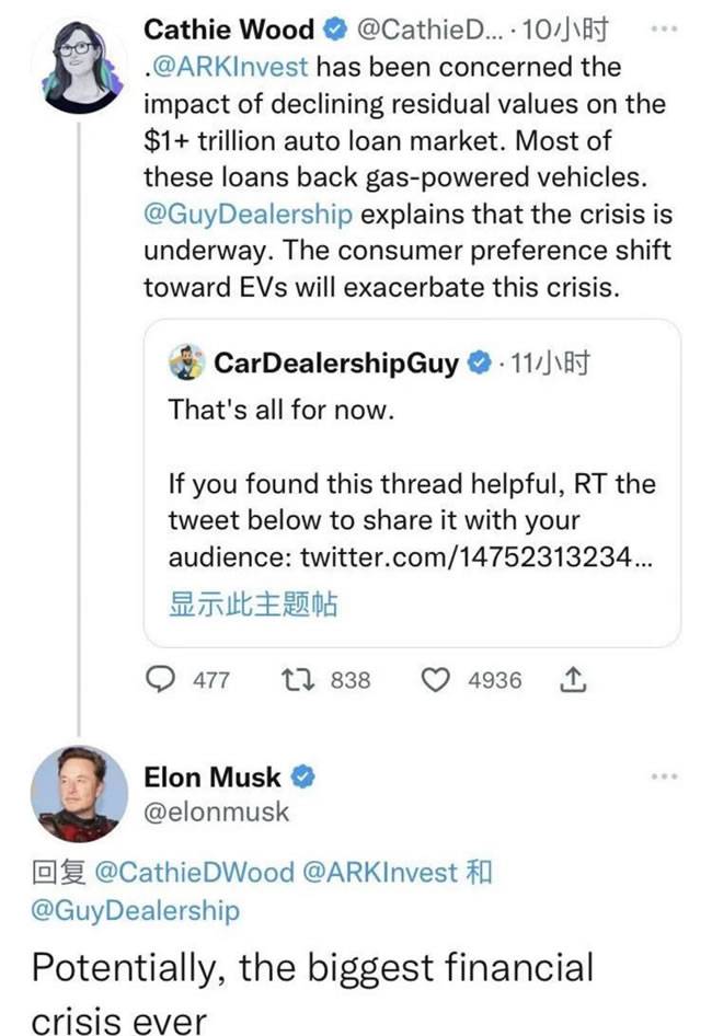 特斯拉应该不会盲目舍弃交付,如果“将暂停招聘并裁员”的消息属实,大概率与当下的经济环境背景相关。12月17日,马斯克回复特斯拉铁杆粉丝“木头姐”时表示,有史以来最大的金融危机即将到来。