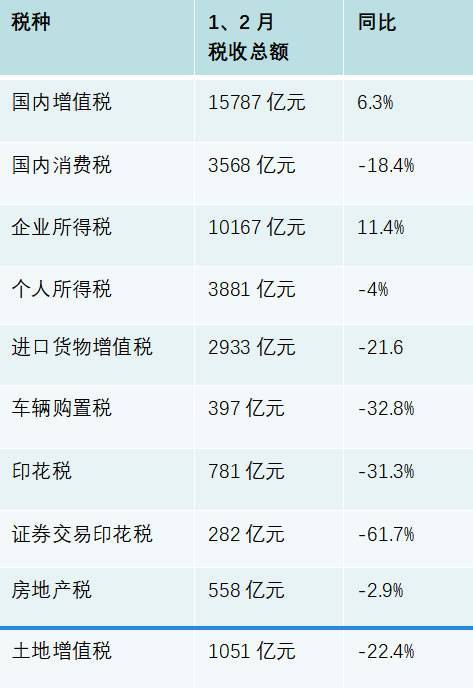 从宏观经济上可以看到,今年1-2月份,中国所有的税收只有国内增值税和企业所得税从国家的收入上来说是增长的,其他的税收全是下降,国内消费税下降了18%,意味着什么?老百姓的消费信心不足,捂紧了腰包。车辆购置税下降了32%,意味着车辆的购买力在下降。证券交易印花税也在下降,说明了我们的股市大家持观望态度,交易不活跃。同样,资本市场也不是很活跃。