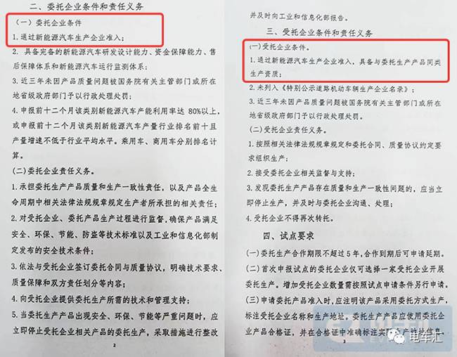 此前还可以通过代工生产的方式造车,但2022年年初,工信部发布了一则《关于开展新能源汽车委托生产试点工作的通知》要求,委托企业的条件是通过新能源汽车生产企业准入,受托企业的条件也是通过新能源汽车生产企业准入,且具备与委托生产产品同类生产资质。这意味着未来新造车企业同样需要取得相关资质,才能寻找同样有资质的代工厂为其代工生产。
