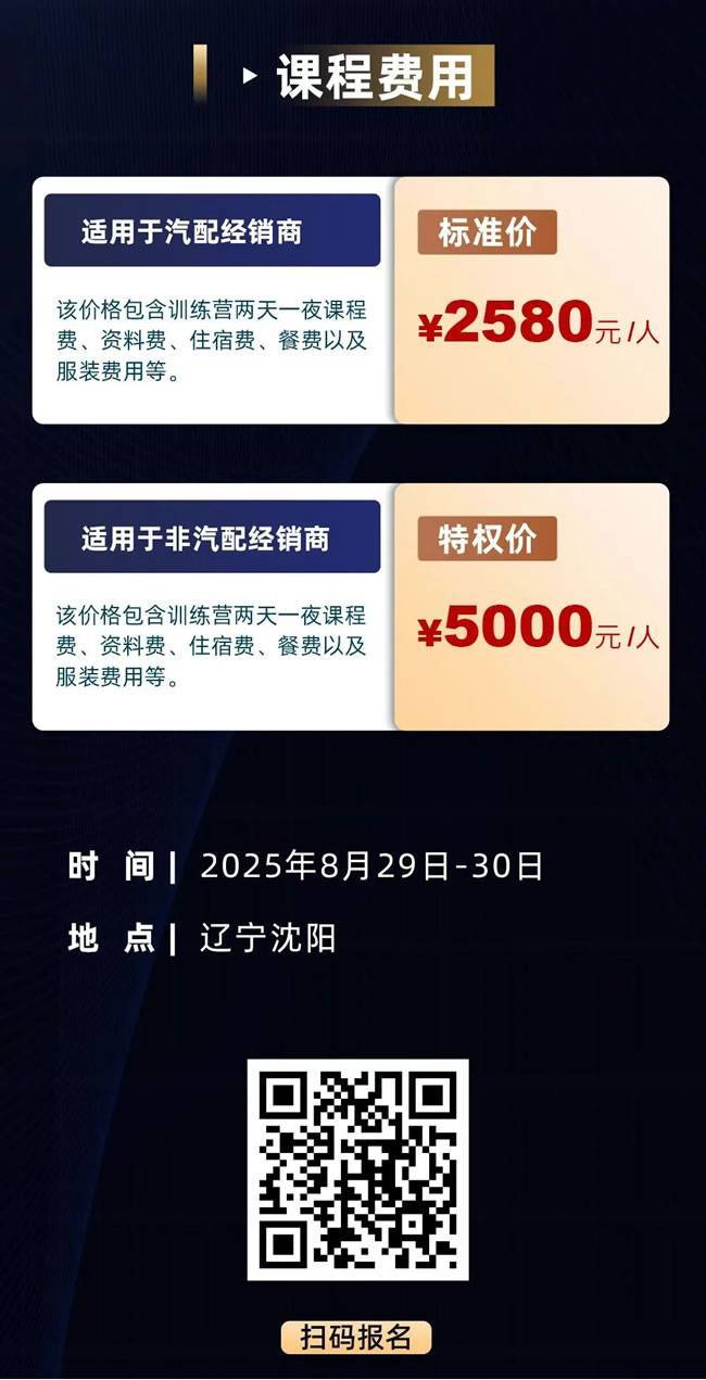 从南京冠盛的涨停效应,到沈阳站的全新升级,汽配圈超级增长训练营始终坚信:没有过时的生意,只有过时的思维。8月29-30日,东北汽配人将迎来属于自己的 "增长涨停板" 倒计时,现在报名,即可解锁让生意既有口碑又爆利润的实战密码!