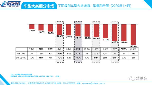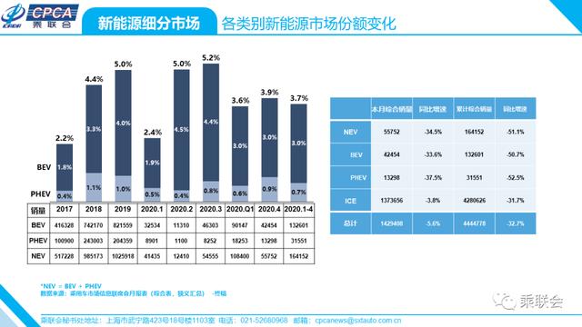 · 不同级别车型大类新能源车型增速、销量和份额——2020年4月及累计