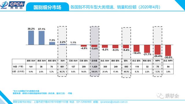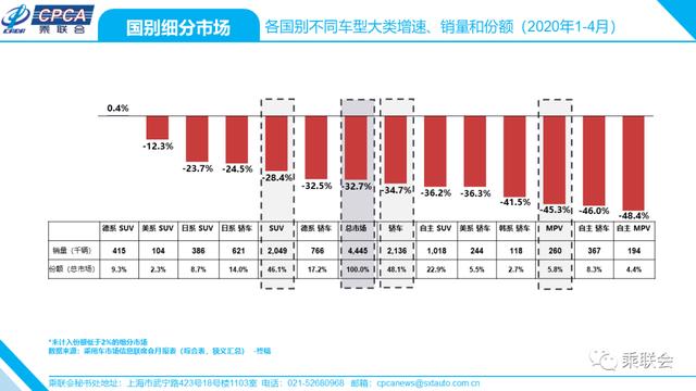 · 各国别不同车型大类增速、销量和份额——2020年4月及累计