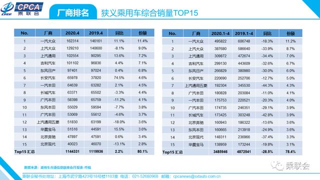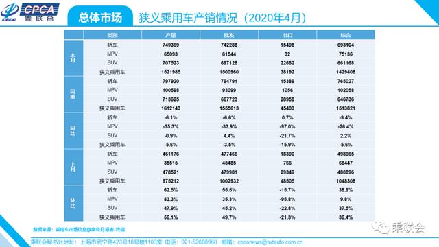 · 狭义乘用车产销情况——2020年4月及累计
