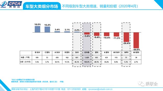 · 不同级别车型大类增速、销量和份额——2020年4月及累计