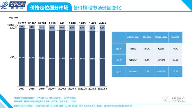 · 各价格段不同车型大类增速、销量和份额——2020年4月及累计