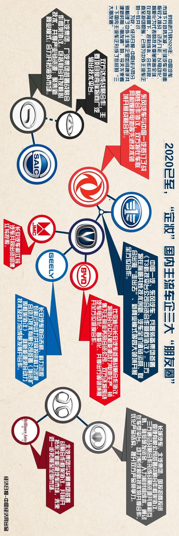 作为央企“朋友圈”的成员,中国一汽、东风汽车以及兵装集团签署协议明确指出,三方将在前瞻共性技术创新、汽车全价值链运营开展全方位合作;地方国企的广汽集团和上汽集团提出,联合开发核心技术;环渤海区域,长城汽车和北汽将展开新技术合作,北汽与华晨共同开拓东北新能源汽车市场。