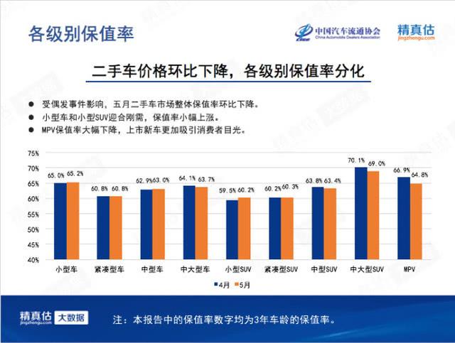 来自精真估的数据显示,5月线上车源量为89.2万,已经超过去年同期88.9万,此时此刻,正是二手车商最忙碌的季节。其中,合资品牌里定位主流的丰田、本田、日产、大众的保值率都有下降;定位豪华的奔驰、宝马、奥迪保值率都比上月有所回升。其中宝马代表性的3系,本月二手车价格涨幅明显,新款3系反而难以吸引粉丝。