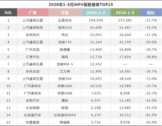 5月份MPV销量8.4万辆,同比下降21.8%,环比增长12.3%;累计销量34.4万辆,同比下降41.0%。