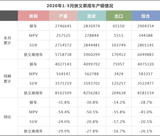 5月份SUV销量75.5万辆,同比增长13.1%,环比增长14.3%;累计销量280.1万辆,同比下降20.5%。