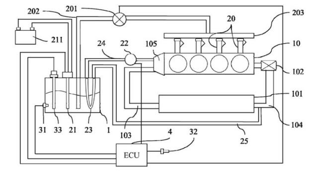 “水变油”“水氢发动机”是荒谬的,但喷水发动机却是一种可行的技术手段。近期,中国第一汽车股份有限公司申请的发明专利被曝光,该专利是一种用于喷水发动机的水箱温度控制系统及其控制方法,是喷水发动机正常运转的重要辅助系统。