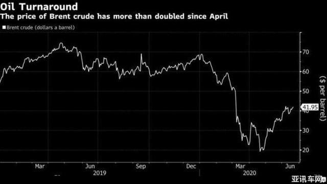 WTI原油期货上周五上涨至每桶40美元以上,这与两个月前的情况正好相反。当时,随着储油罐即将装满,WTI原油期货史无前例地跌至负值,令市场感到非常震惊。北京时间6月22日11:39,布伦特原油报价42.46美元/桶。