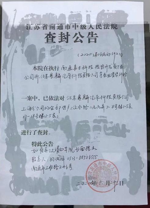 根据该份查封公告显示,南通市中级人民法院在执行南通嘉禾科技投资开发有限公司诉江苏赛麟汽车科技有限公司等企业借贷纠纷一案中,已经依法对江苏赛麟汽车科技有限公司上海分公司的全部资产(汶水路299弄7-8号楼1-5层,17-18号楼1-5层)进行了查封。