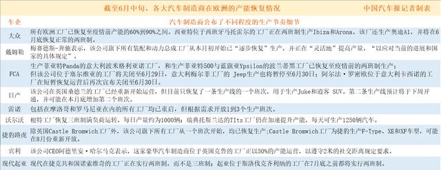 大众表示,该公司在欧洲的所有工厂均已恢复运转,但产能只能维持在疫情前的60%到90%。另外,欧洲另一大汽车制造商雷诺也表示,包括摩洛哥和罗马尼亚在内,该公司旗下所有工厂业已恢复生产,但为了与市场需求同步,部分工厂已从3个生产班次减少至2个甚至1个。