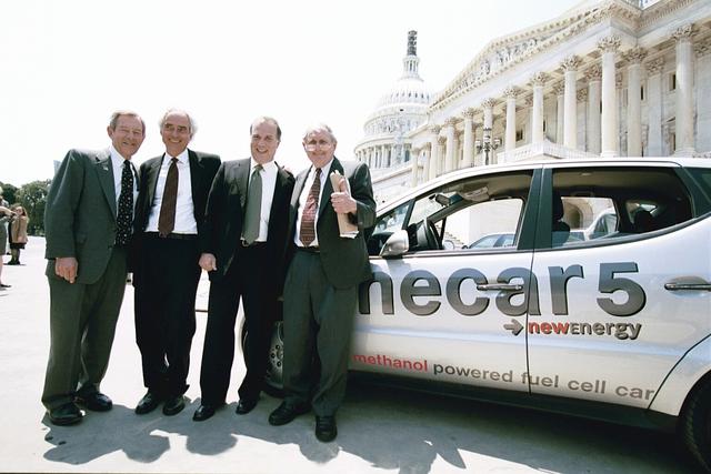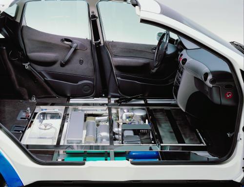 上世纪末的1997年,德国奔驰公司提出甲醇重整燃料电池A级轿车方案。2001年11月,戴姆勒克莱斯勒公司在柏林发布了以甲醇为燃料的燃料电池车NeCar 5,并将其定位为全球第一个达到试用阶段的甲醇重整燃料电池汽车。NeCar5使用甲醇重整制氢、通过选择性氧化PrOx技术去除CO、氢气混合气进入电堆发电的方式车载制氢,即产即用。