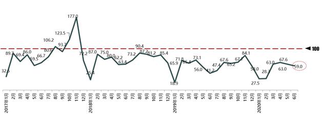 从分指数情况看,6月库存指数、从业人员指数、经营状况指数环比上升,市场需求指数、平均日销量指数、环比下降。