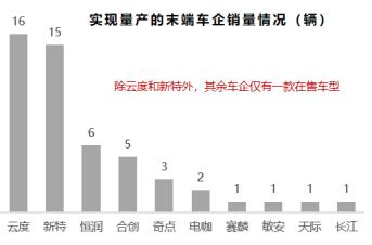 据5月销量来看,头部车企普遍拥有两款车型,销量破千,而末端车企销量仅为个位数。