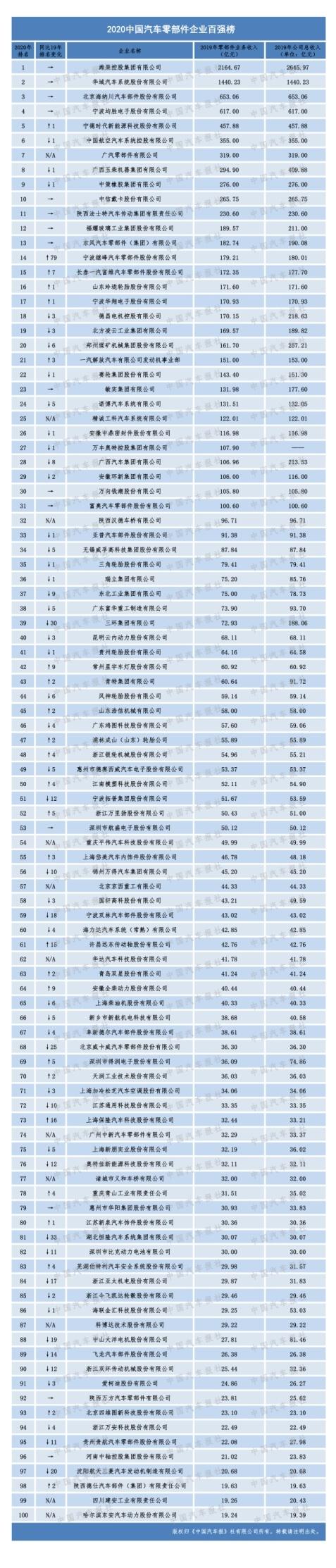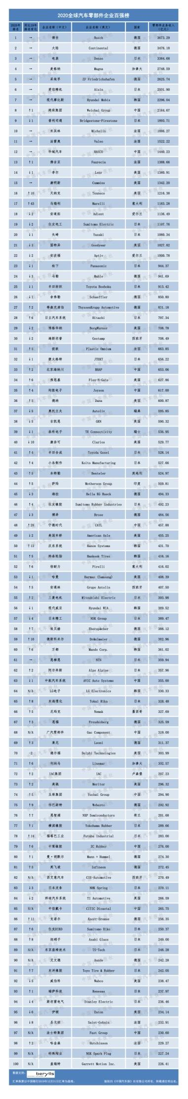 一份专业的全球及中国汽车零部件企业排名榜单新鲜出炉!