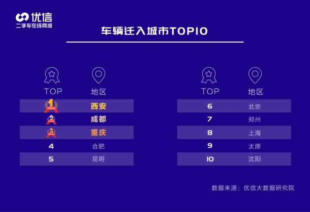 《报告》显示,二手车跨区域流通比例在过去几年不断提升,跨区域交易主要集中在华中、华东和华北地区。2020上半年,石家庄成为二手车迁出量最大城市,西安则为迁入量最大城市,成都、重庆分别排名迁入量城市二三位。迁入与迁出城市均进入前十的包括北京、重庆、成都、西安、上海、合肥。