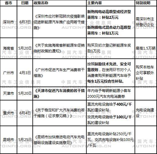 表 上半年地方政府出台的促进新能源汽车消费政策