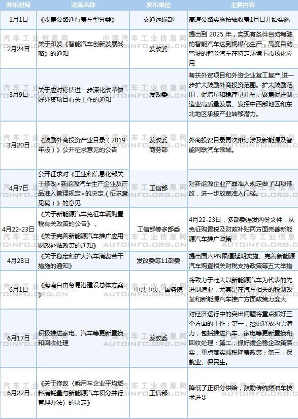 表 2020年上半年国家层面发布的主要汽车产业政策一览