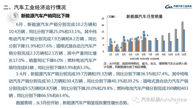 1-6月,新能源汽车产销分别完成39.7万辆和39.3万辆,同比分别下降36.5%和37.4%。其中纯电动汽车产销分别完成30.1万辆和30.4万辆,同比分别下降40.3%和39.2%。
