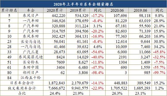 日系品牌自然不用说,在丰田和本田的强势助推下,6月份取得了15.2%的系别最高月销量增幅,也让上半年的半年降幅收窄至14.1%。份额方面,6月份日系已经从同期的23.1%涨至26.3%,份额再次突破四分之一,推动上半年日系车的份额从2019年同期的21.9%涨至24.4%,虽然上半年市占率离四分之一还差0.6个百分点,但6月份的26.3%已经足够说明问题,况且丰田、本田的双车战略还将持续推进,未来德系PK日系、挤占自主的局面将会持续。