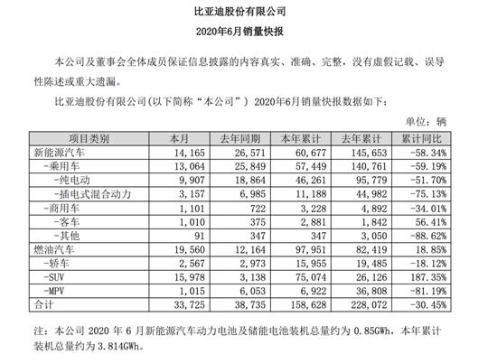 与上汽集团上半年销量频频下滑类似,比亚迪的日子似乎也并不好过。据比亚迪公布的销量数据显示,今年上半年比亚迪的累计销量为158,628辆,同比下滑了30.45%,其中新能源车的累计销量为60.677辆,同比下滑了58.34%,燃油车的累计销量为97,951辆,同比增长了18.85%,以新能源车见长的比亚迪在燃油车领域实现了大幅度增长,这或许是谁都未曾想到的。