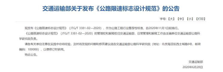 日前,交通运输部发布了《公路限速标志设计规范》,作为公路工程行业推荐性标准,自2020年11月1日起施行。公告指出,在2020年11月1日实行后,全国将统一、规范限速标志,届时大量不合理的限速标志将面临拆除。今后,限速标志将会切合实际交通状况、沿线设施等情况做到科学设置,向驾驶员提供正确、及时的信息实现一目了然。多地发起改革,重点解决限速“忽高忽低”。